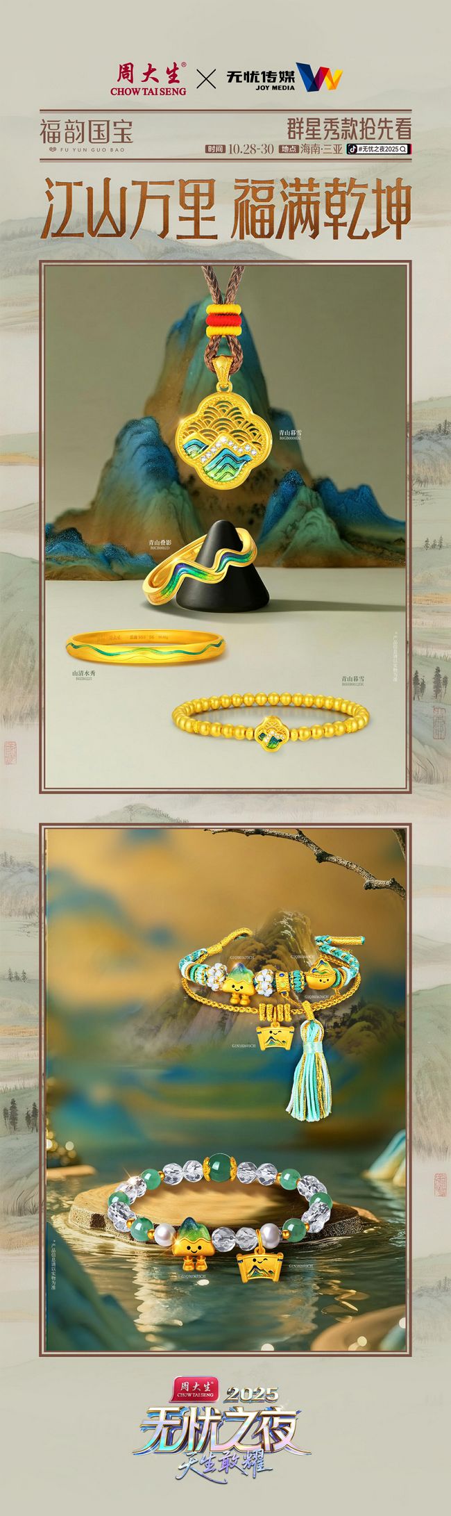 在本次盛典的系列活动中,周大生将与无忧传媒进行深度内容共创,全方位展现其“供应链硬实力”与“内容软实力”的完美融合。从红毯盛典到主舞台表演,从品牌展区到线上多平台联动直播,周大生将以卓越的产品力与内容创造力,重新定义黄金珠宝在当代消费语境中的价值内涵,让每件产品都成为承载文化底蕴与情感表达的精致艺术品,实现从“保值品”向“日常奢侈品”和“情绪价值载体”的价值升华。