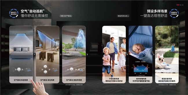 全屋设备互联场景下可联动睿享舒适,约克VRF依托约克AIR X超级空气联动系统,能联动室内空调及新风设备,根据不同场景的需求设定,提供科学诊断、联动设备、智能触发、自巡航运行的健康舒适空气解决方案。