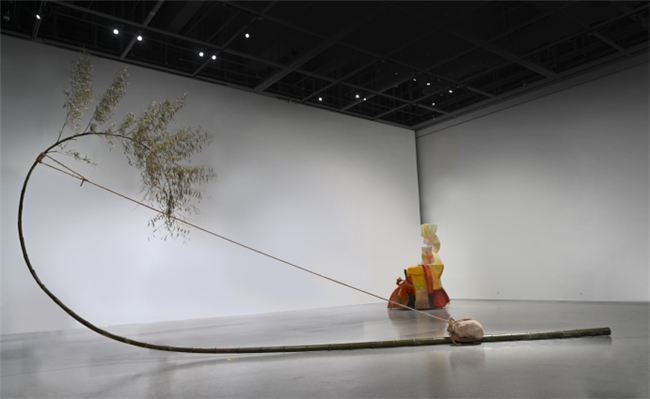 张琪凯《势》 装置 2021 竹子 石头 麻绳 可变尺寸