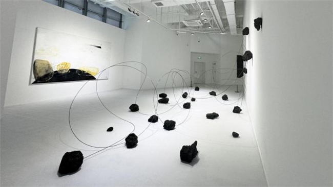 张琪凯《墨石》 装置 2021 纸 石头 墨